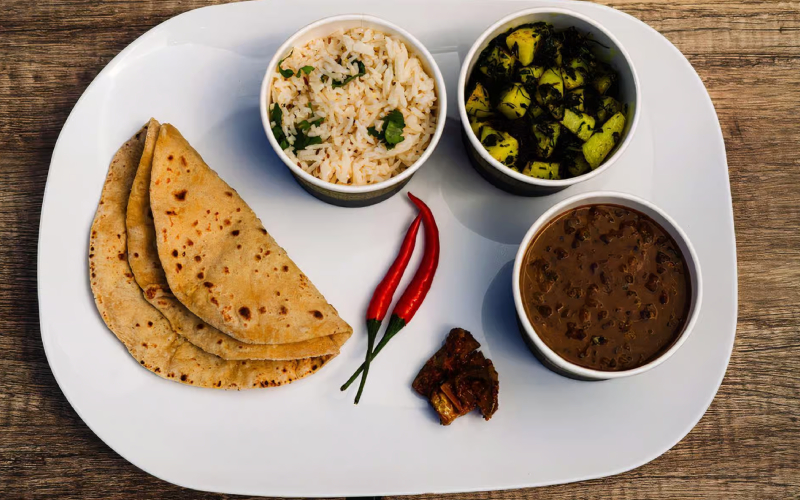 It includes – 8 Roti 16OZ Daal 16 Oz Sabji, Salid, 6 days a week and two times rice one time sweet dish a week